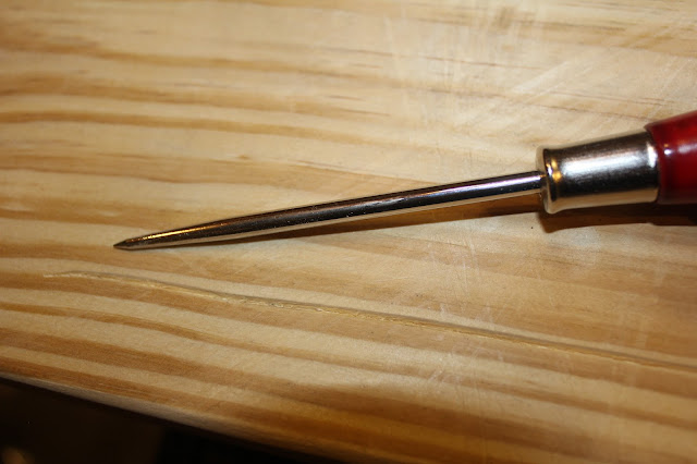 I used this pick thing to make worm holes...and to gouge deep lines in the wood.