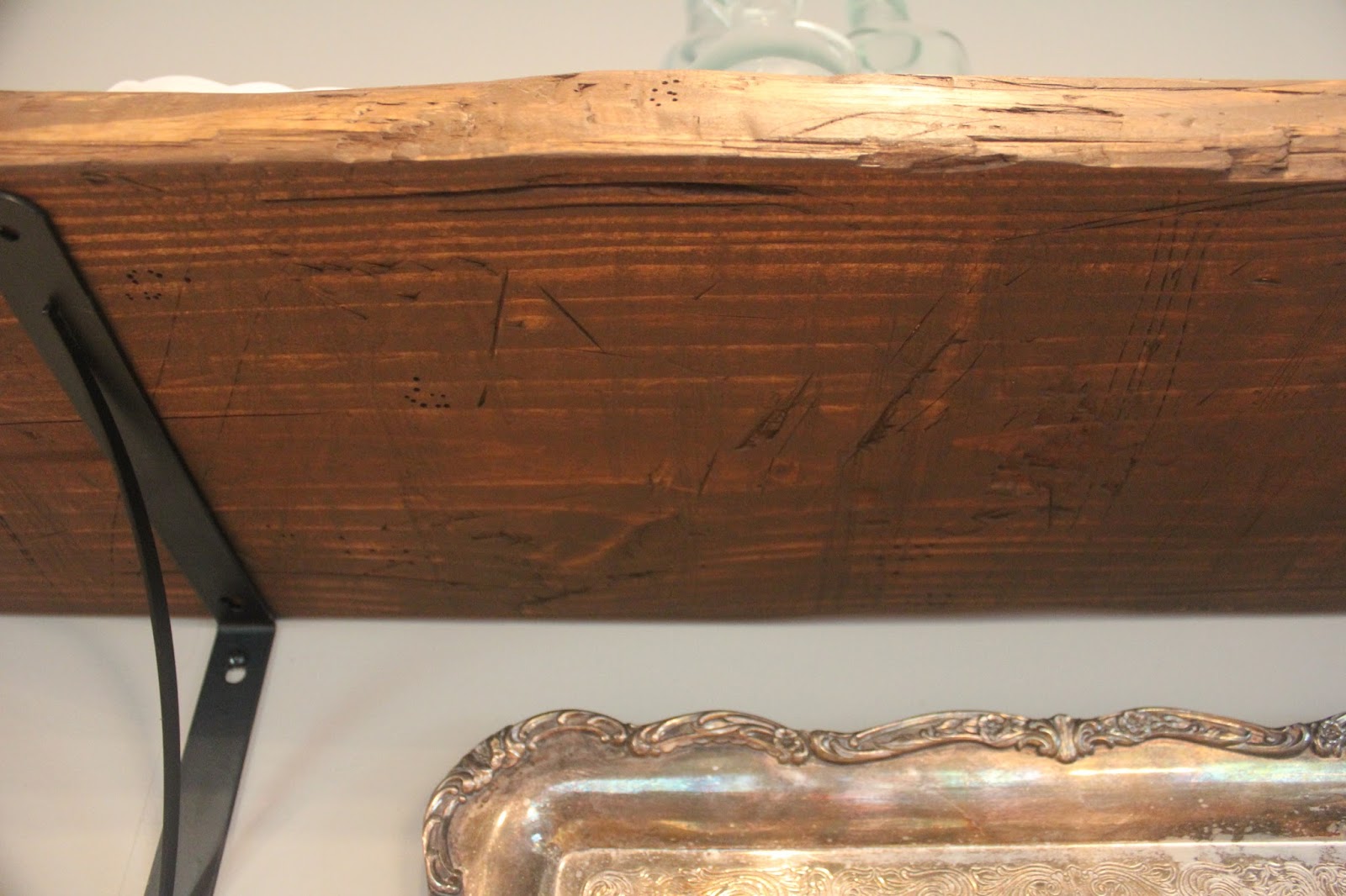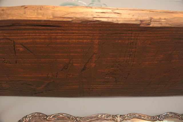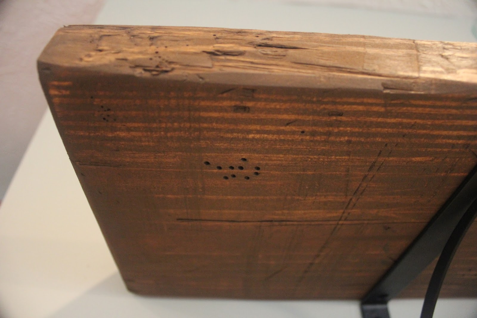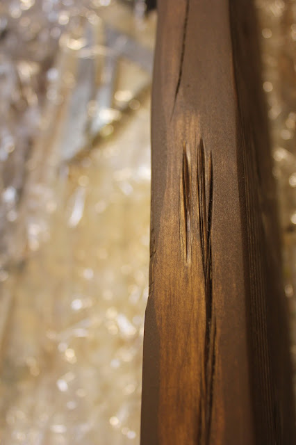 First I took a hammer and randomly hit the wood...making sure to NOT do so in any kind of pattern!
